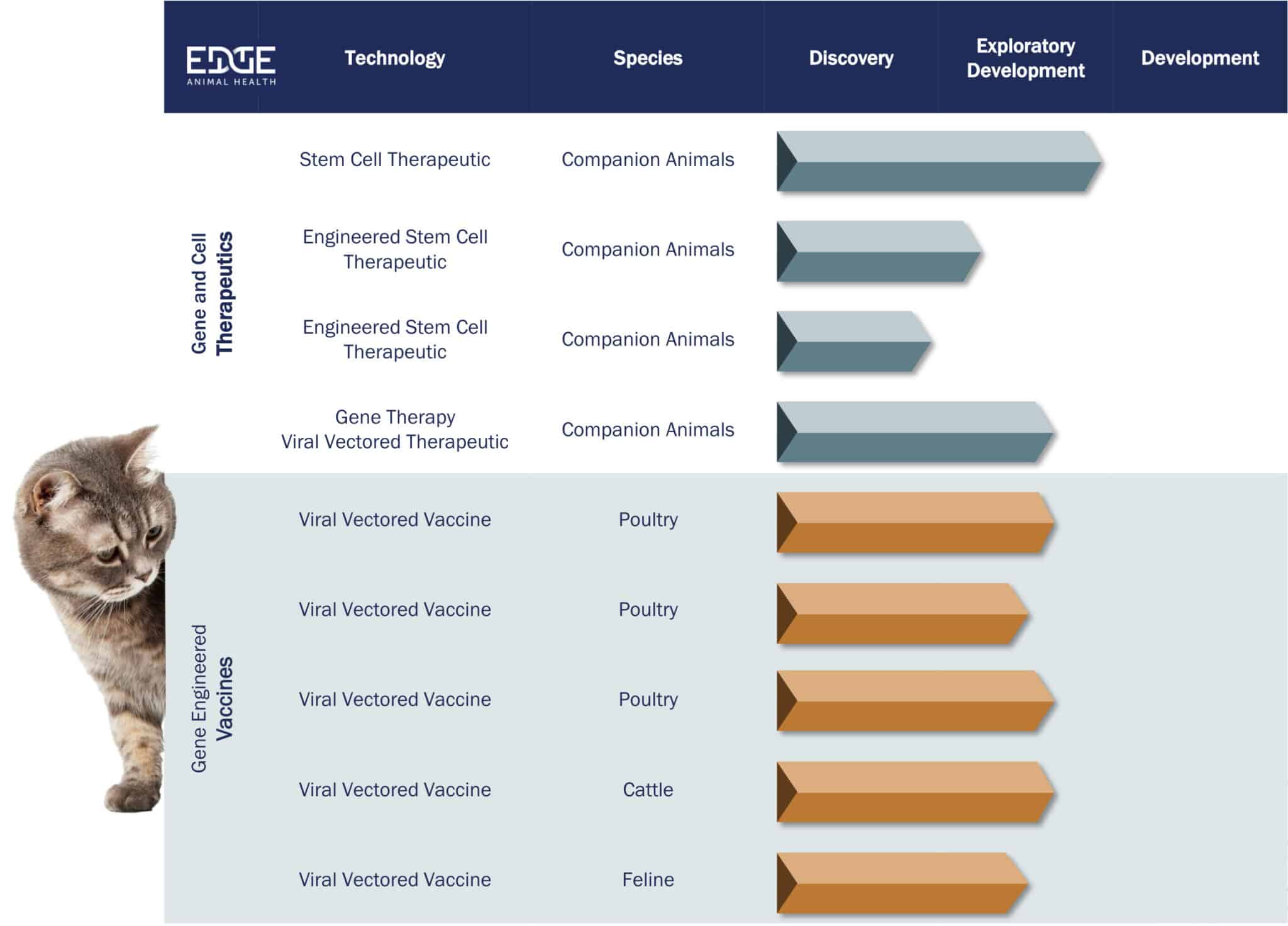 The use of genetic engineering technologies has been advancing rapidly into cell and gene-based products in the clinic, for human health applications, in recent years. Edge is poised to leverage this experience to bring novel therapeutic solutions to animal health.